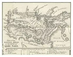 Nach der verpatzten Invasion unternahmen die Ägypter einen erneuten Eroberungsversuch von Äthiopien, diesmal mit einer Armee von etwa 13.000 Mann. Die Truppen von Isma'il Pascha, jetzt unter Führung von Ratib Pascha, erreichten Massawa am 14. Dezember 1875.[12] Im März erreichten sie die Ebene von Gura und errichteten zwei Festungen, eine in der Ebene von Gura und die andere am Khaya-Khor-Pass, der nur wenige Kilometer entfernt lag. Yohannes hatte erneut mobilisieren lassen und stellte den Krieg als einen Kampf zwischen Christentum und Islam dar. Tausende von Männern zogen als Soldaten in den Kampf, die bis nach Gojjam kamen, obwohl Meneliks Soldaten in Shewa als Beobachter blieben. Die Äthiopier, die nun über eine Streitmacht von etwa 50.000 Mann verfügten (von denen aufgrund der Lage des Schlachtfelds nur etwa 15.000 gleichzeitig kämpfen konnten), griffen die Ägypter am 7. März 1876 an. Ratib Pascha befahl etwas mehr als 5.000 der 7.500 im Fort Gura stationierten Männern, das Fort zu verlassen und die Äthiopier anzugreifen. Diese Truppe wurde allerdings schnell von der äthiopischen Vorhut, geführt von Ras Alula, umzingelt und brach schnell zusammen. Die Äthiopier zogen sich daraufhin zurück und unternahmen am 10. März einen zweiten Angriff auf Fort Gura, der jedoch zurückgeschlagen wurde. Die Ägypter mussten sich bald darauf zurückziehen.[6]
