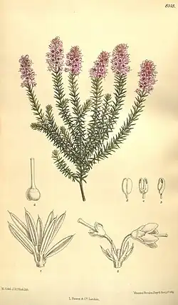 - ↑ a b Erica spiculifolia im Germplasm Resources Information Network (GRIN), USDA, ARS, National Genetic Resources Program. National Germplasm Resources Laboratory, Beltsville, Maryland. Abgerufen am 27. Juli 2025.