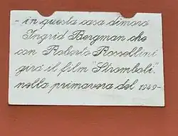 - 1949 drehte Roberto Rossellini auf der Insel Stromboli den gleichnamigen Film Stromboli. Eine Gedenktafel erinnert an die Dreharbeiten.