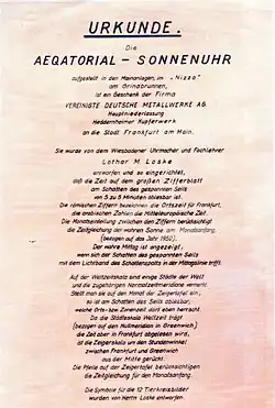 - Kunst im öffentlichen Raum Frankfurt: Äquatorialsonnenuhr (Frankfurt am Main)