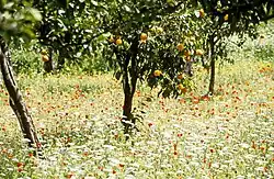 Die rezente Kulturland-Vegetation umfasst die typischen Bestände des Mittelmeerraumes: Vor allem in der Yüreğir-Ebene in der Umgebung von Adana und im Gebiet in Richtung Karataş findet man Hortikulturen (Gartenkulturen) mit Feigen, Granatäpfeln, Maulbeeren, Mandeln, Aprikosen und Zitrusfrüchten. Daneben gibt es weitere nennenswerte Obstanbaugebiete am rechten Ceyhanufer sowie in den Gemeinden Alihocalı, Karalhüyüğü, Tahçe und Tuzla. Zudem wird neben Ölbäumen auch Zuckerrohr kultiviert, das hier nicht der Zucker-Gewinnung dient, sondern als Speise und zur Herstellung von Saft. Die Çukurova ist außerdem nicht nur der zweitgrößte Honigproduzent in der Türkei, sie ist auch im Land führend bei der Ernte von Soja, Erdnüssen und Mais und ein bedeutender Produzent von Obst und Gemüse. Die Erdnuss wird in der Çukurova zwar bereits seit längerem kultiviert, ist dort aber zunächst keine allzu häufig anzutreffende Feldfrucht gewesen. Ihr Anbau hat jedoch in den letzten Jahrzehnten deutlich zugenommen. Die Hälfte des türkischen Zitrusexports stammt aus Çukurova. Man findet natürlich Zypressen und auch „Fremdlinge“, wie Kasuarinen (Casuarina equisetifolia, Kängurubaum), Mimosen, Agaven, Palmen, Lebensbaum (Thuja sutchuenensis), Feigenkakteen (Opuntien; Opuntia ficus-indica), Pistazien sowie auffallend häufig Ulmen. An den Flussufern überwiegen Weiden, Tamarisken, Ölweiden und Schilf, das als Windschutz und Einfriedung verwendet wird. Auf den Dünenzügen wachsen wilde Reben, Myrte, Brombeeren und weiter landeinwärts diverse Halophyten.[18] Bekannt ist, dass es in der Çukurova bereits im 16. Jahrhundert Reisanbau gab. Soysal[19] ermittelte den Schwerpunkt von damaligen Reisplantage-Siedlungen in der oberen Ebene entlang des Ceyhan bedingt durch die zahlreichen Flussarme und Bäche sowie aufgrund der nachweisbaren Bewässerungstechniken (Norias/Wasserschöpfräder). Von den für das Sandschak Adana genannten 31 Reisplantagen befanden sich damals insgesamt 25 im Bereich Kınık.