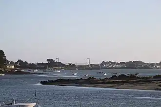 Der Étel oberhalb von Belz, Blick auf die Hängebrücke Pont Lorois | ||