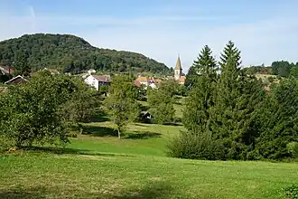 ![]() Étobon vor dem Hügel Butte d’Étobon | ||