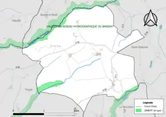 Alle Wasserläufe münden letztendlich rechtsseitig in den Bandiat, der zum Flusssystem der Charente gehört.