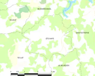 Die im Norden des Périgord gelegene Gemeinde Étouars ist etwa 8 Kilometer von Javerlhac und rund 12 Kilometer von Nontron entfernt. Nächstliegende größere Städte sind Angoulême (40 Kilometer westlich) und Limoges (65 Kilometer nordöstlich von Étouars).