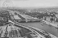 In der Seine weiter südwestlich wurde vom Konzessionär des Pont de Grenelle 1825 im Zuge des Brückenbaus unterhalb der Brücke eine neue Insel aufgeschüttet, arrondiert und 1827 mit Steinufern befestigt. Sie erhielt von der verschwundenen Insel den Namen Île aux Cygnes. Die am 1. Mai 1827 eröffnete – über die Insel führende – Pont de Grenelle musste wegen Baufälligkeit bereits 1874 durch eine neue Brücke ersetzt werden. In Höhe der Insel ist die Seine 200 Meter breit, die heutige Grenelle-Brücke ist deshalb mit 220 Metern die zweitlängste Seinebrücke nach dem – ebenfalls über die Insel führenden – Pont de Bir-Hakeim (228 Meter) innerhalb von Paris. Im Jahr 1878 entstand die Eisenbrücke Passerelle de Passy, die die Insel mit der Rive Gauche (südliches Seineufer) verband und anlässlich der Pariser Weltausstellung im Mai 1878 eröffnet wurde. An ihre Stelle trat die zwischen Mai 1903 und April 1906 fertiggestellte Pont de Bir-Hakeim; sie überspannt die Insel in einer Breite von 23,50 Metern.