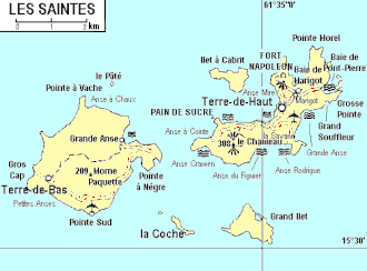 Die zwei Hauptinseln der kleinen Inselgruppe sind Terre-de-Haut und Terre-de-Bas, wobei Terre-de-Haut den zentralen Platz mit einem einzigartigen Naturhafen darstellt. Im Nordosten dieser Insel befindet sich auch das historische Fort Napoléon, das den Eingang zum Hafen militärisch deckte. Auf Terre-de-Bas werden Kaffee, Baumwolle, Pfeffer und Bananen angebaut.
