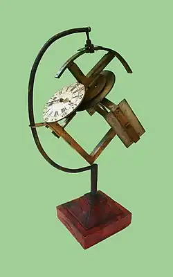Diese Prozedur wiederholte sich bei jedem neuen Aufstellen. Lediglich die Neigung der Polachse blieb erhalten, weil der sie tragende Meridian-Ring an einem Bügel pendelnd aufgehängt war.[9] Ausführungen auf nivellierbarer Grundplatte waren seltener.[10]
