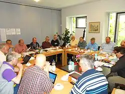 Die HuK gliedert sich zum einen regional. In einer Reihe von Städten und Regionen bestehen 13 Regionalgruppen (2021).[32] Die Gruppe in Hannover ist als selbständiger eingetragener Verein organisiert.[33] Die Gruppen nehmen in unterschiedlicher Intensität an den Aktivitäten der HuK teil. Zum anderen gliedert sich die HuK in thematische Arbeitsgruppen. Dazu zählen die Arbeitsgruppen[34]