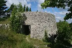 Direkt daneben befindet sich die sogenannte Flyktingkällan (deutsch Flüchtlingsquelle), ein Gedenkstein für die Letten, die gegen Ende des Zweiten Weltkriegs nach Gotland geflüchtet sind.[6] Südöstlich der Kalkofenruine und etwas abseits der Straße, die auf den Berg führt, befindet sich ein großer Steinbruch beim Kliff Gutenviksklint. Kalkofenruinen befinden sich auch bei Kaupungskling im Südosten.[7] und bei Grönskogshuvud im Südwesten[8]