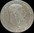 Ornamente „X CORONÆ“, Adler mit Wappen, Wert, Jahr der Prägung „FRANC•IOS•I•D•G•IMP•AVSTR•REX BOH•GAL•ILL•ETC•ET AP•REX HVNG•“, Franz Joseph I. mit Lorbeerkranz 1892–1893, 1896–1897, 1905–1906