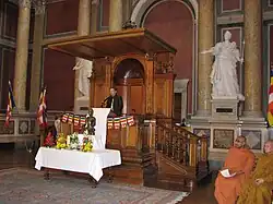 Im interreligiösen Dialog spielt der Verein eine durchaus angesehene Rolle.[13] Eine staatskirchenrechtliche Sonderstellung nimmt der Buddhismus insofern ein, als er (2014) die einzige der 14 anerkannten Kirchen oder Religionsgesellschaften ist, die nicht zu den Offenbarungsreligionen (Christentum, Islam, Judentum) gehört, sondern eine Erkenntnisreligion ist, also den Gottesbegriff vermeidet.[14] Europaweit beachtet wird die Organisation auch darum, weil sie die erste anerkannte und damit gesetzlich verfasste[4] buddhistische Organisation Europas war (1998 folgte Portugal, 2000 Italien).[15]