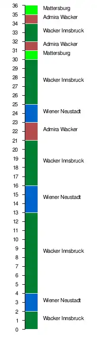 | 0:3 | 0:1 | 2:1 | 0:2 | 1:1 | 2:3 | 0:1 | 0:1 | 2:1 | SC Wiener Neustadt | 0:6 | 1:0 | 3:0 | 0:0 | 1:0 | 0:0 | 2:2 | 0:0 | 2:0 | ||