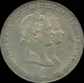 - ↑ 1 Gulden zur Vermählung 1854, Information zur Randinschrift