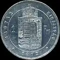 2 Gulden[4] | „HVNGAR•BOHEM•GAL•LOD•ILL•REX A•A•“, Jahr der Prägung, großer Adler, Wert | 1867–1872 | |||||