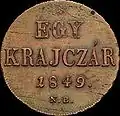 - ↑ 20 Kreuzer 1868 KB, Wertseite „VÁLTÓ PÉNZ“, Neuprägung mit Rosette vor FERENCZ