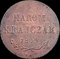 | 1 Kreuzer | 19 mm | 3,333 g | glatt | Wert, Jahr der Prägung, Münzzeichen | „K•K•OESTERREICHISCHE SCHEIDEMÜNZE“, kleiner Adler (Feder berührt Reichsapfel nicht) | 1858–1863, 1873 | |||