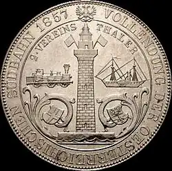 - ↑ 2 Vereinstaler zur Vollendung der Südbahn, Neuprägung mit gepunztem „BIJ“ unter Leuchtturm-Fundament