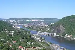 Stadtpanorama mit der Burg Střekov (rechts im Bild)Blick Richtung Stadtzentrum