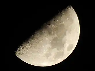 - der rechte Winkel zwischen Sonne und Mond während eines Halbmonds.
