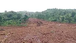 Durch Erdrutsch zerstörte Landwirtschaftsflächen im Dorf Humbarli, 26. Juli 2021