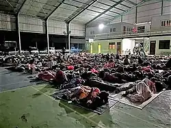 Der Staat verteilte Hilfsgüter zur Zeit vor allem in der Hauptstadt. Hier gab es mehrere Verteilstellen, um den Leuten die Rückkehr in ihre eigenen Stadtviertel zu ermöglichen und die Notlager zu entlasten. Ohnehin nutzten die meisten Menschen die Notunterkünfte nur zum Essen und Schlafen und gingen tagsüber zur Arbeit oder bauten ihre Häuser wieder auf. Die Verteilung von Bau- und Reinigungsmaterialien begann in den nächsten Tagen.[16]