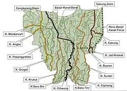 Die Hafenstadt Jakarta wurde auf einem sumpfigen Küstengebiet errichtet. Die Niederländer der Ostindien-Kompanie schütteten im 16. Jahrhundert in ihrem Kolonialstützpunkt Land auf und errichteten Kanäle. Außerdem wird die Stadt von 13 Flüsse entwässert. Aus dem einstigen Batavia wuchs eine Großstadt mit rund 10 Millionen Einwohnern, 30 Millionen sind es in der ganzen Metropolregion.[1]