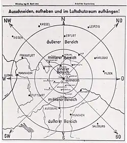Die Übersichtskarte für Luftlagemeldungen war eine Hilfestellung für das Abhören der Rundfunk- und Drahtfunkmeldungen in der Hochphase des Luftkrieges im Dritten Reich. Sie wurden auf Befehl der Gauleitung ab Mitte 1944 in der örtlichen Tagespresse veröffentlicht, meist mit der Aufforderung, diese in der Wohnung oder im Luftschutzraum aufzuhängen.