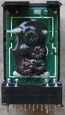 Übertrager (auch Einphasentransformator[1]) ist ein induktives Bauteil der Nachrichtentechnik. Ähnlich einem Transformator aufgebaut, unterscheidet er sich in seiner meist primär und sekundär gleichen Wicklungszahl und seiner Anwendung ausschließlich zur leistungslosen Signalübertragung.