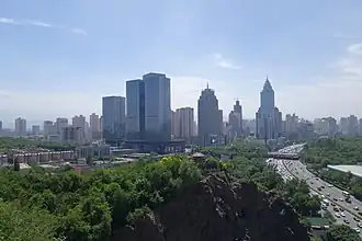 Obwohl die alten Stadtgebiete hauptsächlich im Süden liegen, begann die Entwicklung im nördlichen Teil seit den späten 1980er Jahren. Die Fertigstellung des neuen Büroturms für die Stadtverwaltung von Ürümqi im Jahr 2003 am Nanhu-Platz (南湖广场) an der Nanhu-Straße markierte eine Verlagerung des Stadtzentrums nach Norden. Die Xinjiang Guanghui Group (新疆广汇集团) ist mit 108.000 Mitarbeitern[8] das größte Immobilienunternehmen und das mächtigste Unternehmen in Privatbesitz in Xinjiang und ist in den Bereichen Energie und Automobile tätig.