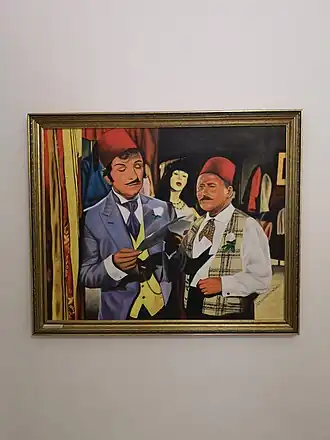 - Das Lied „Üsküdar’a Gider İken“ wurde in mindestens zwei türkischen Kinofilmen thematisiert, „Katibim (Üsküdara Giderken)“ und „Kâtip (Üsküdara Giderken)“.[84] 1956 erschien der erste „Kâtip“-Film unter dem Titel „Katibim (Üsküdara Giderken)“, von dem Filmregisseur Şinasi Özonuk.[85] Der bekannteste „Kâtip“-Film ist jedoch der vom Regisseur Ülkü Erakalın gedrehte Film „Kâtip (Üsküdara Giderken)“ aus dem Jahr 1968 (Drehbuchautor: Sadık Şendil), in dem der Sänger Zeki Müren nicht nur singt, sondern auch als Schauspieler neben Sezer Güvenirgil die Hauptrolle spielt.[86][73][87] Dieser Film, in dem das Lied eine wichtige Rolle spielt, wurde in der Türkei und in der türkischen Diaspora sehr populär.[73][87] Der Film erweitert die Handlung des Liedes zu einer längeren romantischen Erzählung.[87] Der von Zeki gespielte osmanische Hofschreiber ist in eine Freundin aus Kindertagen verliebt und wird aufgrund seiner schönen Singstimme von der mächtigen Mutter des Sultans zur musikalischen Ausbildung der Frauen des Sultans eingeladen, worauf der kontrollierbare Hofschreiber seine Geliebte als Haremsmädchen wiedersieht und ihre „unmögliche Liebe“ – ein bekanntes osmanisches Topos – in einem klagenden Duett ausgedrückt wird.[88] In einem Interview mit Adela Peeva erklärte Ülkü Erakalın, die Rolle des kâtip verkörpere für das türkische Publikum eine von Frauen geliebte Persönlichkeit, gutaussehend, geachtet, gut erzogen und mit „Spazierstock und Maniküre“.[87][89] Der türkische Kinofilm stützte sich in dieser Zeit über viele Jahre hinweg stark auf Lieder, so dass es nicht ungewöhnlich schien ein Lied für die Erstellung eines Drehbuches heranzuziehen. Die Filme erhielten somit auch teilweise den Charakter einer für alle Bevölkerungsschichten erschwinglichen und landesweit zugänglichen Konzertveranstaltung, die auch in provisorischen Kinos oder gelegentlich selbst unter freiem Himmel stattfinden konnte.[72]