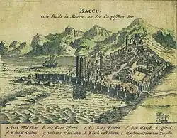 | Befestigte Stadt von Baku mit Palast der Schirwanschahs und Jungfrauenturm | |