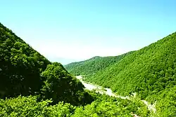 Der Bezirk umfasst 2074 km². Die Landschaft gehört zum Großen Kaukasus und ist teilweise bewaldet. Es gibt Vorkommen an Ton und viele Mineralquellen.[1]