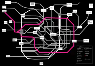 Die Linie bedient als unechte Ringlinie 38 Stationen. Züge von Hikarigaoka umkreisen das Stadtzentrum gegen den Uhrzeigersinn, bevor sie in Tocho-mae auf ihren Laufweg treffen und wenden.[1]