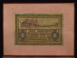 - ↑ a b M. Uğur Deman: Letters in Gold: Ottoman Calligraphy from the Sakıp Sabanı Collection, Istanbul. Metropolitan Museum of Art, New York 1998, ISBN 978-0-87099-873-7, S. 46 (eingeschränkte Vorschau in der Google-Buchsuche).