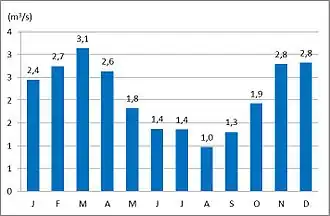 | Abfluss am Pegel Pristava[2] Lage: ca. 6 km oberhalb der Mündung |