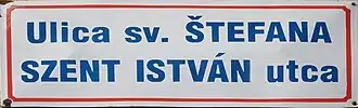 Zweisprachiges Straßenschild – oben slowakisch, unten ungarisch