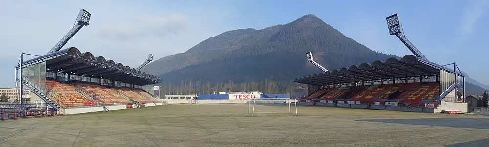 | Das Štadión MFK Ružomberok mit dem Berg Čebrať im Hintergrund (April 2008). | ||