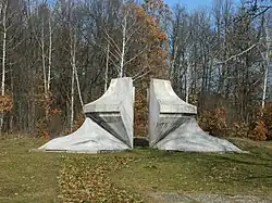 Das Denkmal für den Widerstand und die Freiheit markiert ein Massengrab des Massakers vom Oktober 1941, welches sich an dieser Stelle befindet. Es besteht aus einem etwa 12 Meter hohen Betonobelisken, dessen Ende sich aufgabelt, sowie einer Bronzestatue. Der Obelisk weist Ähnlichkeiten zum lateinischen Buchstaben V auf, welcher für Victory (englisch für Sieg), also den Sieg der Partisanen über den Faschismus stehen könnte.