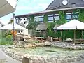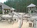 Im Dorf gibt es ein großes Gästegelände der Brauerei „HBH Juozo alus“ mit Biergärten, Restaurants, einem Reitzentrum und einem ausgedehnten Kinderspielgelände. So sieht das Gelände am frühen Morgen aus, bevor es für Besucher geöffnet ist: