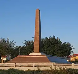 Auf einer rechteckigen erhöhten Plattform, deren Schmalseite auf die Sderot Moscheh Sneh ausgerichtet ist, erhebt sich in seinem von der Straße aus gesehen hinteren Drittel mittig ein Obelisk in rotem ägyptischem Granit.[13] An den vier Seiten seines Sockels erinnern die Worte, übersetzt auf deutsch «Zum Gedenken an die gefallenen Soldaten der Schlacht bei Isdud»,[13] auf Arabisch, Englisch, Hebräisch und in ägyptischen Hieroglyphen, an die hier im Krieg gegen Israels Unabhängigkeit getöteten Ägypter.[37]