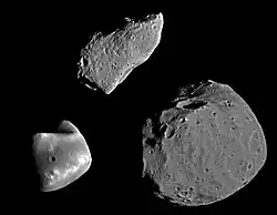Die Bilder zeigten ein unregelmäßig geformtes, konisches Objekt mit einer auffällig verkraterten Oberfläche, allerdings mit nur wenigen Kratern, die größer als etwa 1,5 km im Durchmesser sind. Die Gestalt wird durch glatte, sanft geschwungene Oberflächen bestimmt, die durch Grate begrenzt werden. Zwei große Konkavitäten von etwa 8,5 km Ausdehnung dominierten den sichtbaren Rand. Eine Analyse der Krater wies auf ein Alter der Oberfläche von etwa 200 Mio. Jahren hin. Die Oberfläche zeigte geringe, aber räumlich zusammenhängende Variationen von Albedo und Farbe.[9]