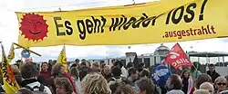 - Am 26. März 2011 veranstalteten .ausgestrahlt und mehrere Partner vier Großdemonstrationen in Berlin, Hamburg, Köln und München unter dem Motto Fukushima mahnt: Alle AKWs abschalten!, an denen nach eigener Schätzung insgesamt über 250.000 Menschen teilnahmen, davon etwa 100.000 in Berlin.[11][12]
