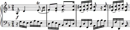 Die Durchführung beginnt in Takt 226 im Klavier mit dem zum einfachen Quartsprung verkürzten Halali-Motiv. Sie bedient sich ausgiebig der thematischen Elemente des Hauptsatzes, die spannungsreich verarbeitet werden.