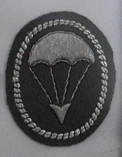 Das Verbandsabzeichen war, wie bei einer Division üblich, in eine silbern-schwarze Kordel eingefasst und zeigte einen entfalteten Fallschirm in Schattenfarbe auf blauem Grund mit „eingehängtem“, nach unten deutenden Pfeil. Die Symbolik bezog sich auf die Luftlandeaufgaben des Verbandes und taucht vereinfacht auch in Form des taktischen Zeichens der NATO-Fallschirmjägertruppen auf.