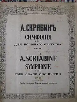 Alexander Skrjabins 1. Sinfonie E-Dur wurde 1900 vollendet und als op. 26 des russischen Komponisten veröffentlicht. Das sechssätzige Werk setzt erstmals in der russischen Sinfonik über den Instrumentalsatz hinaus Vokalsolisten und Chor ein.