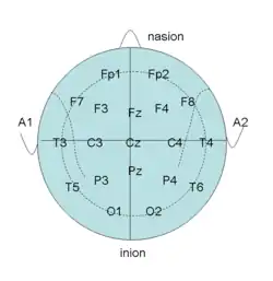Das 10-20-System wird bei der Elektroenzephalografie (EEG) zur Platzierung der Elektroden auf der Kopfhaut verwendet.
