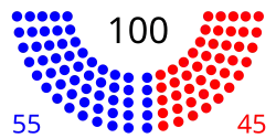 | Ende des 100. Kongresses | 54 | 45 | 100 | 1 |