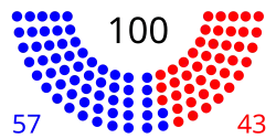 | Ende des 102. Kongresses | 57 | 43 | 100 | 0 |