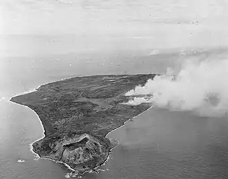 ![]() Die von der 109. Division verteidigte Insel Iwojima während eines Luftangriffs US-amerikanischer Bomber kurz vor der Invasion, Februar 1945 | |
